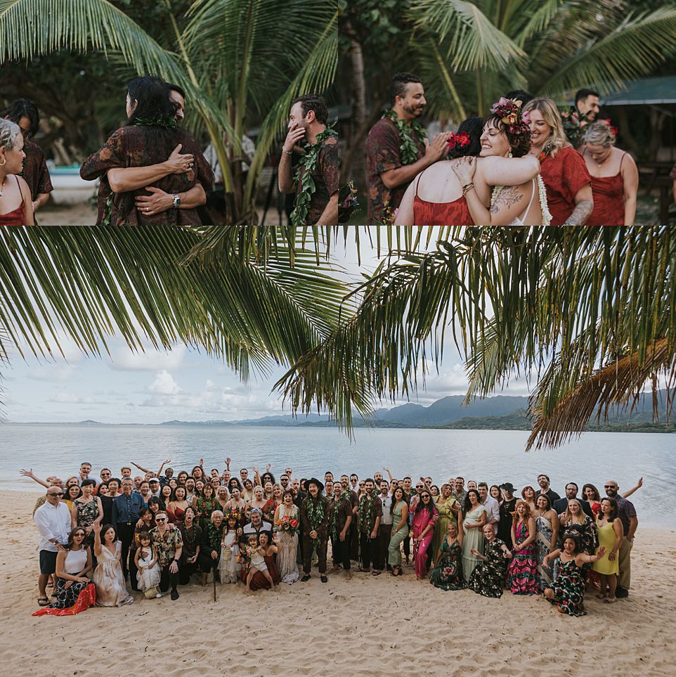 The boat ride — usually around five minutes — becomes part of the experience itself. Your guests will board with excitement, take in the views of Kaneohe Bay, and arrive ready to celebrate with you on the shore.