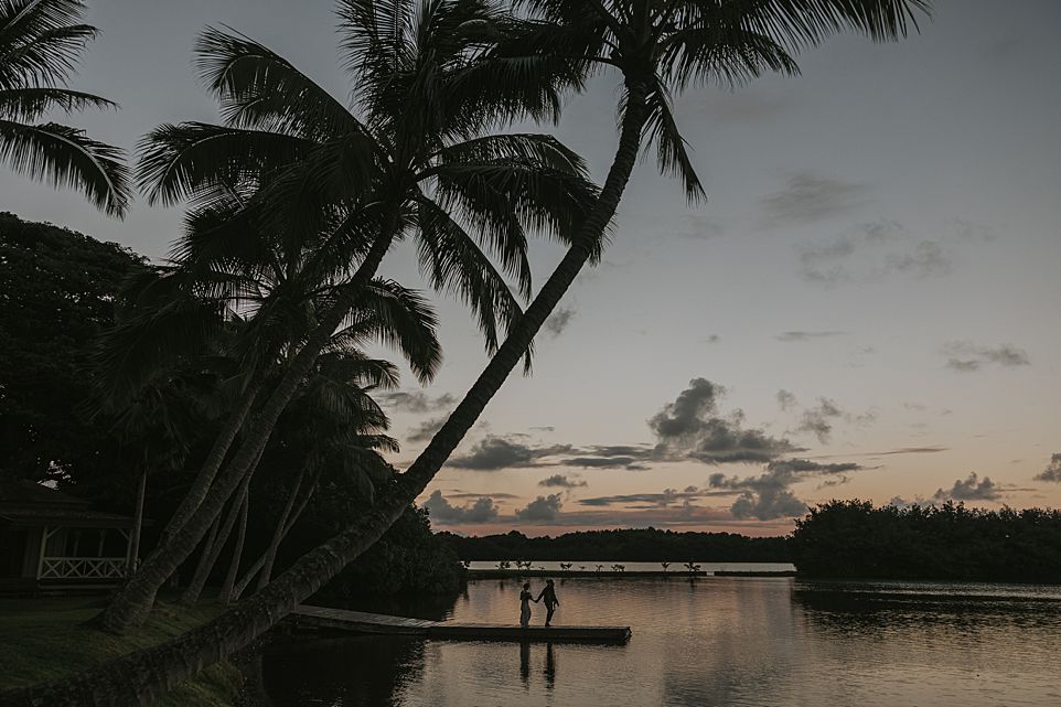 Secret Island isn’t actually a separate island, but it *feels* like one. To reach it, couples and guests board a cozy catamaran and take a short boat ride across the ancient Moli’i Fishpond — a picturesque start to your wedding day that already feels like an adventure.